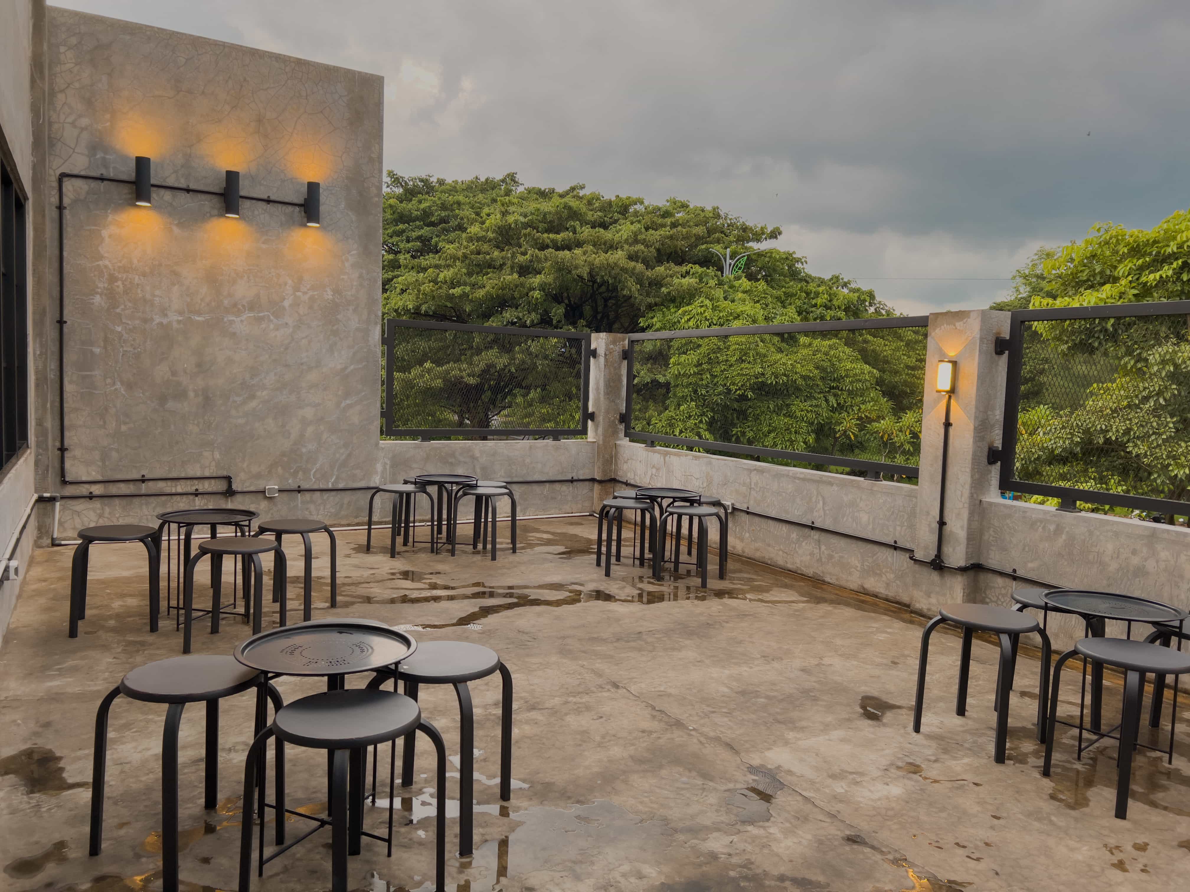 indoor smoking to dodge the heat, outdoor smoking for loud yapping, and a family zone for the wholesome ones.